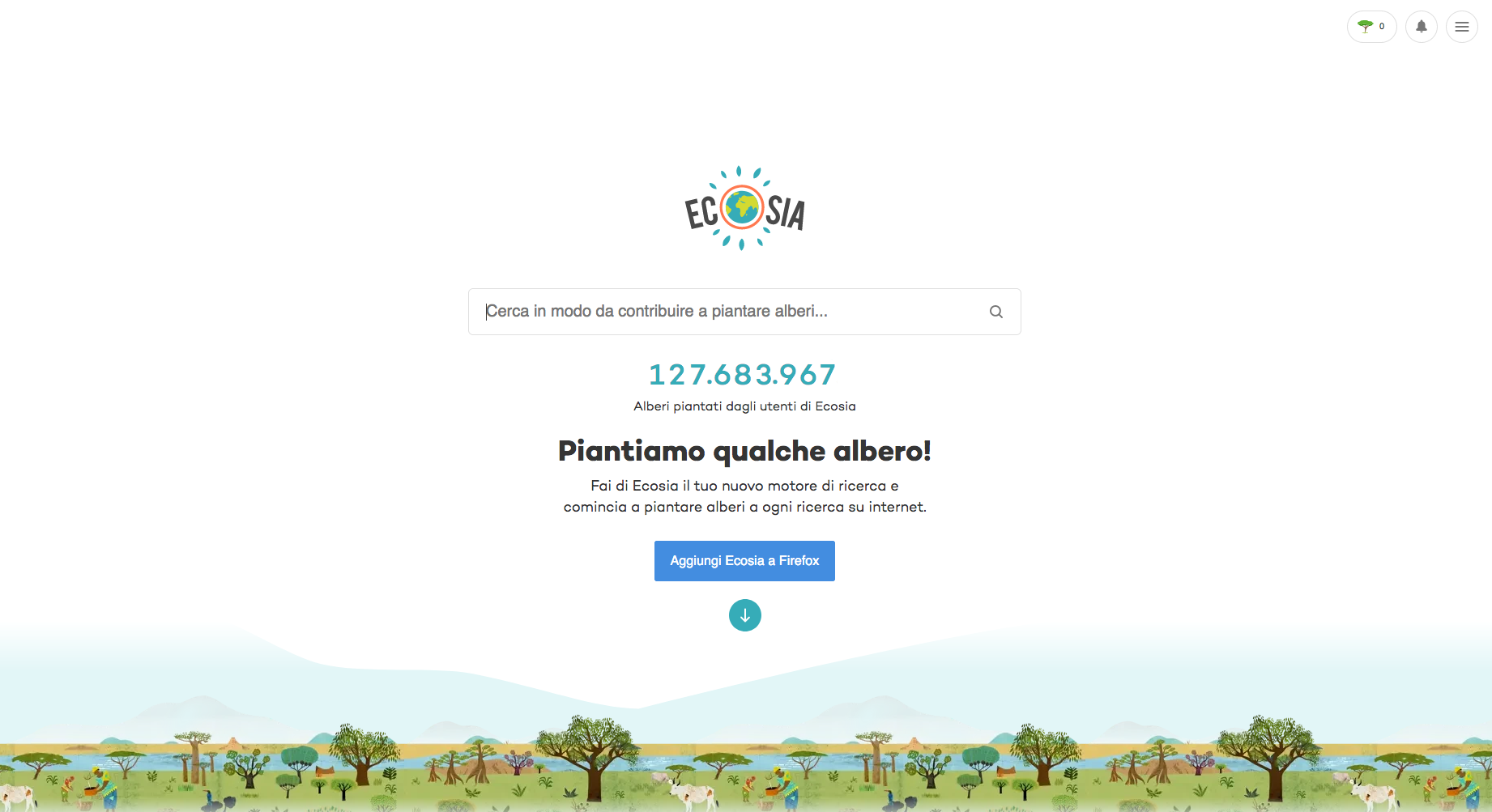Ecosia è un motore di ricerca alternativo particolarmente sensibile alle tematiche ambientali. Gli sviluppatori lo definiscono infatti un motore “a basso impatto” in quanto ogni circa 45 ricerche effettuate si finanzia la piantagione di un albero: un modo green di concepire la navigazione Internet che farà certamente piacere alle persone più sensibili al tema.